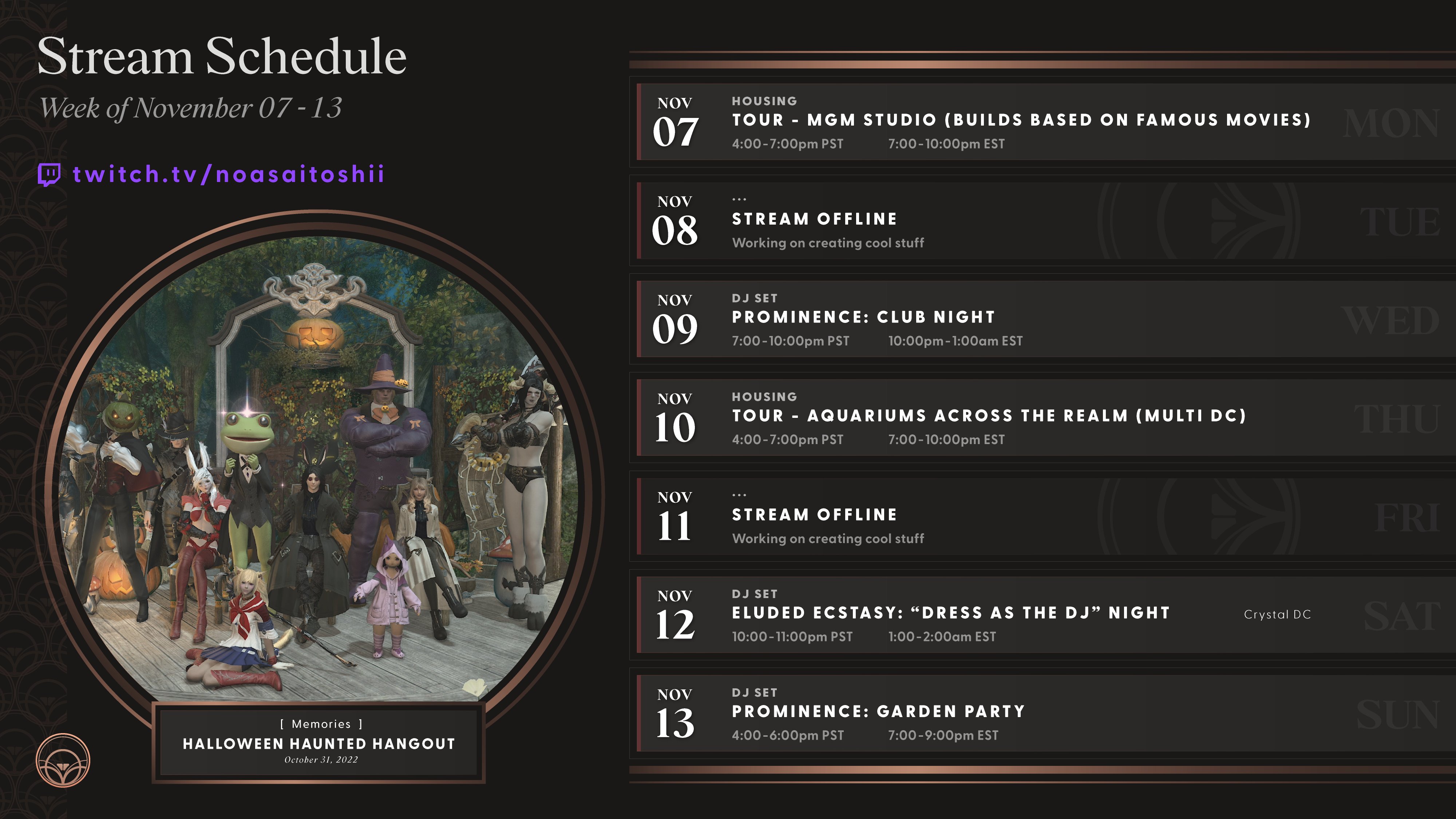Noa Saitoshii On Twitter Stream Schedule Nov 7 13 Double Housing Tour Activities This Week 17 Movie Inspired Fc Rooms On Monday Aquariums Across Multi Dc S On